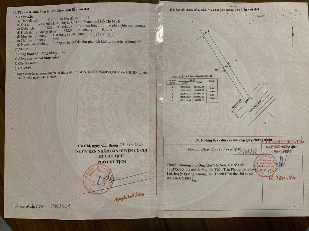 Đất có diện tích 5x70 = 342m2, có 150 m2 thổ cư, quy hoạch khu dân cư