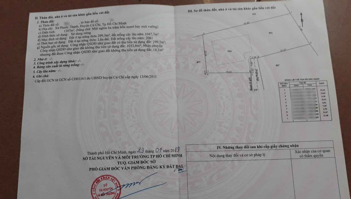 Tổng khuôn viên rộng 23x50= 1347m2 có 300 m2 đất thổ cư, còn lại là đất trồng cây lâu năm. Trên đất có sẵn 2 căn nhà cấp 4 còn nội thất.