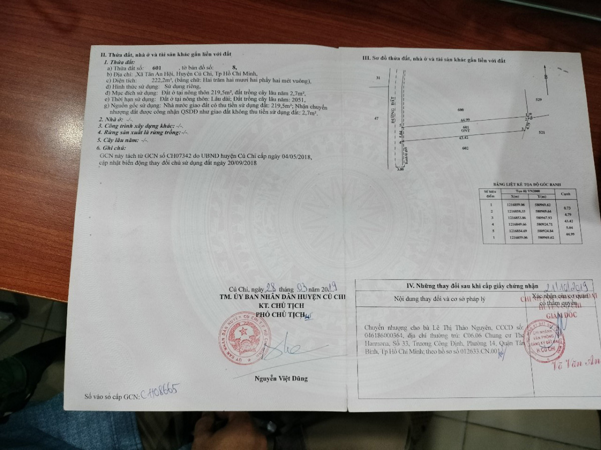 Bán đất thổ cư củ chi diện tích 5x44m, tổng 222 m2 full thổ cư cách KCN Tây Bắc 1.5km. Khu dân cư đông, yên tĩnh, gần các tiện ích.