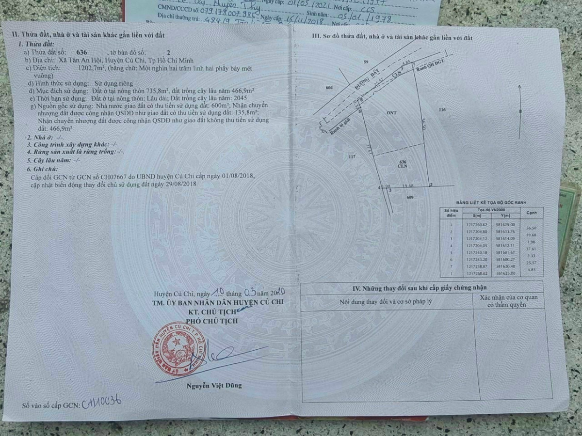 ? Diện tích 1202m2 có 735m2 thổ cư, quy hoạch khu dân cư hiện hữu.