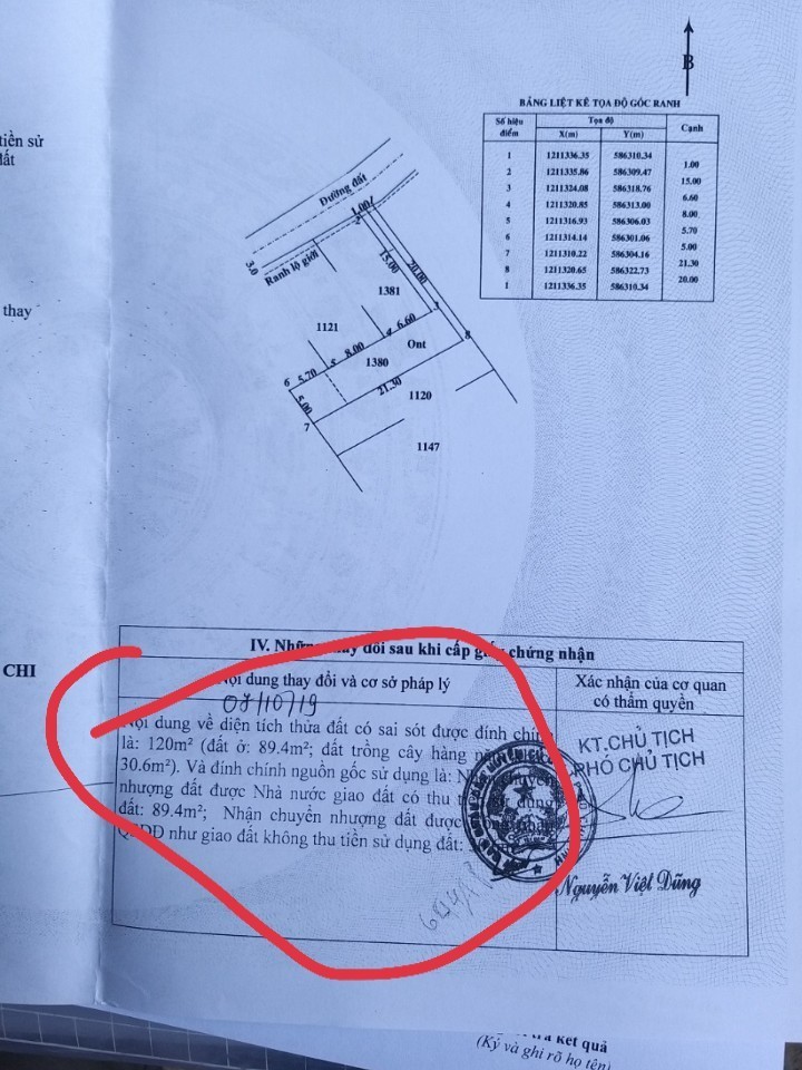 Diện tích 120 m2, ngang 5 dài 21, có 89.4 m2 thổ cư. Đất bằng phẳng cao ráo