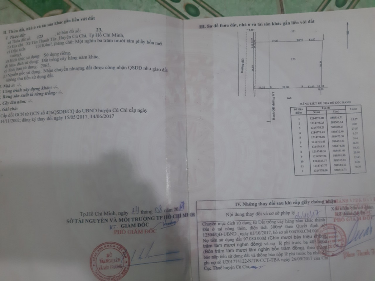 Bán đất Tân Thạnh Tây Củ Chi diện tích 30x44m, tổng 1318 m2, có 300 m2 thổ cư, đường xe tải thông cách TL8 100m thích hợp xây xưởng, biệt thự nhà vườn.