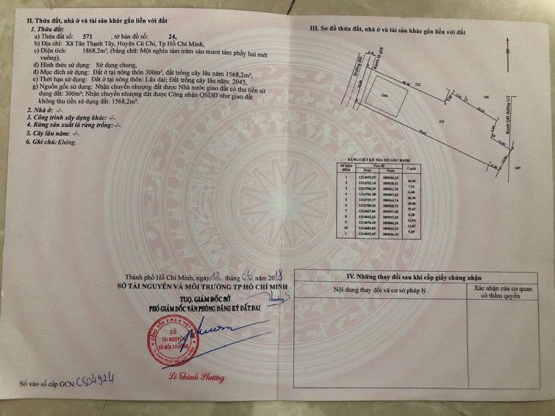 Bán đất xây nhà vườn, kho xưởng tại Tân Thạnh Tây Củ Chi diện tích 20x79m, tổng 1868 m2 có 300 m2 thổ cư, đường xe tải cách TL8 150m.