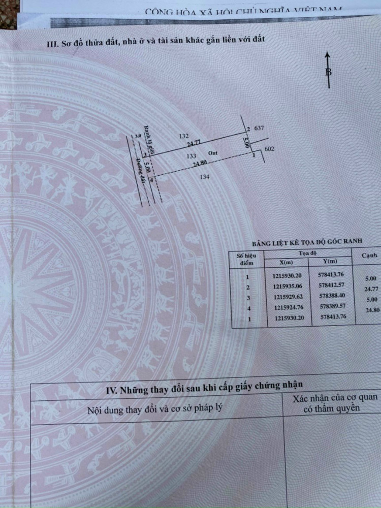 Diện tích 5x24.7m, diện tích tổng là 123 m2, thổ cư hết đất.