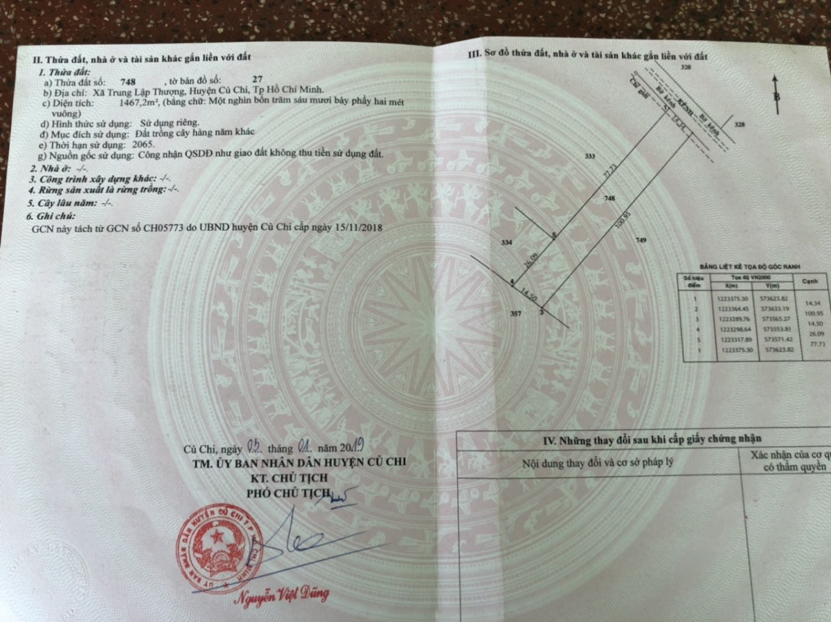 Diện tích 14x100m, công nhận trong sổ 1467 m2. Sổ hồng riêng sang tên ngay